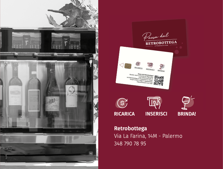 Da Retrobottega infatti troverai una selezione di 8 vini, già pronti per essere assaggiati, un sistema che permette la mescita del vino in piena autonomia, per provare il vino prima di acquistarlo o per passare una serata piacevole in compagnia dei colleghi dopo il lavoro, con gli amici.